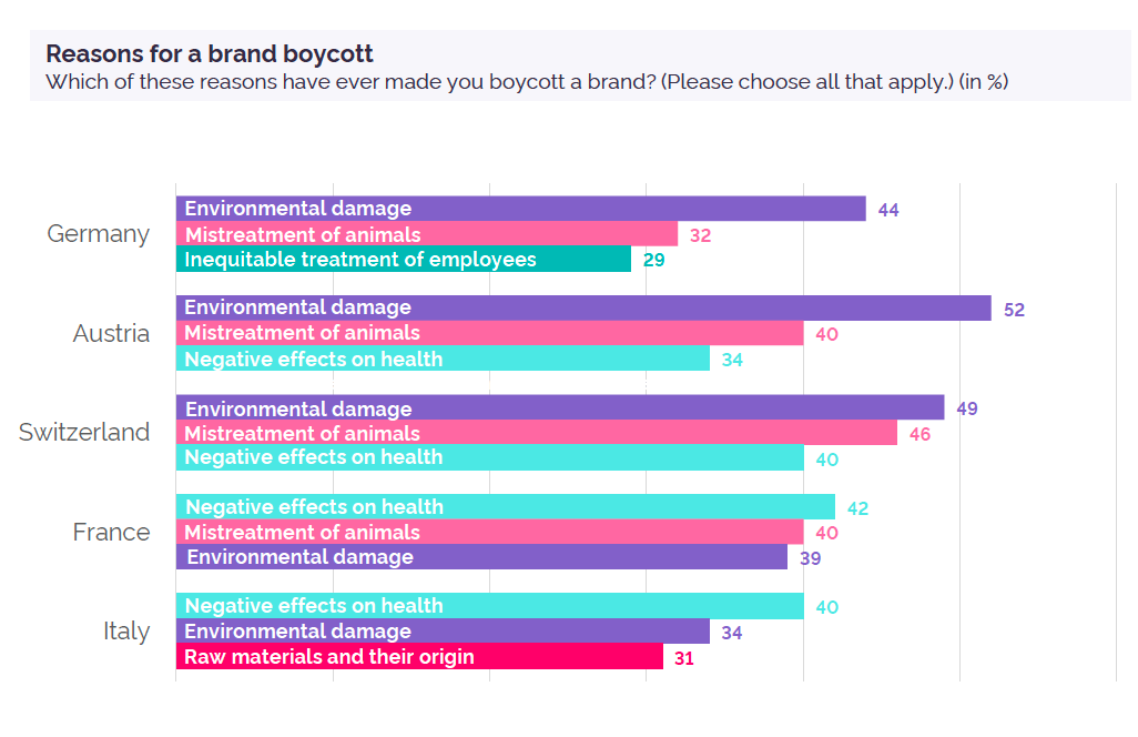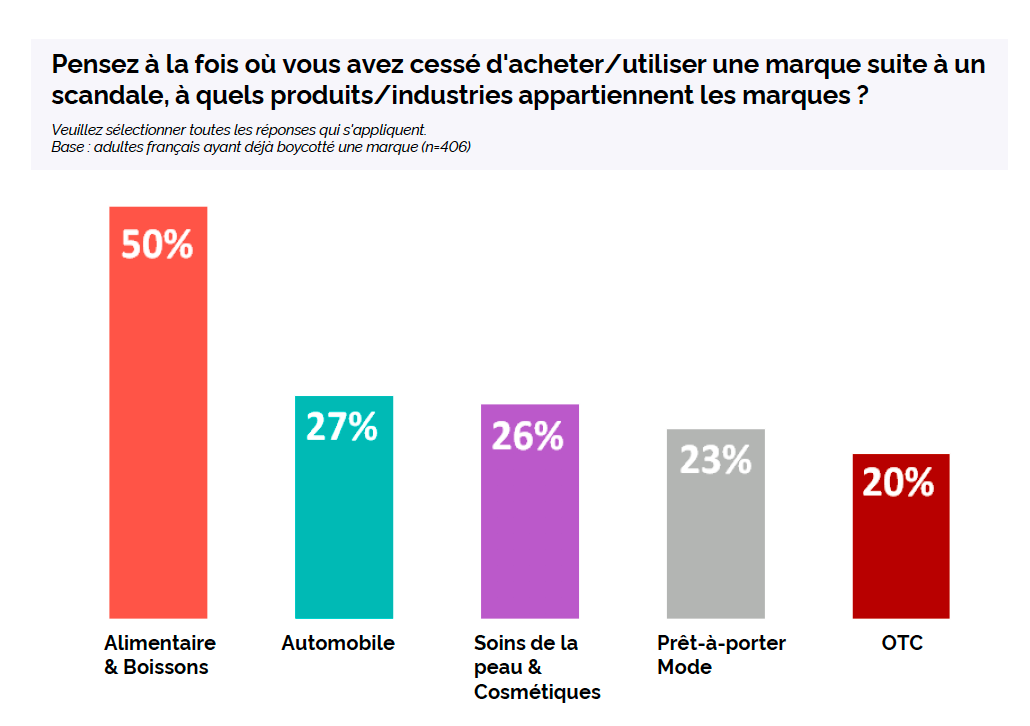 En France, on note une sur-sensibilité liée à la santé : 42% des Français ont boycotté une marque à cause de produits présentant un risque pour la santé des consommateurs (un chiffre bien plus élevé que la moyenne européen, 30%).