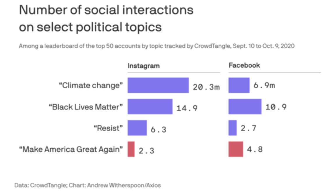 Why it matters: The politics playing out on Instagram reflect a younger, more progressive generation. Many have left Facebook to their parents”