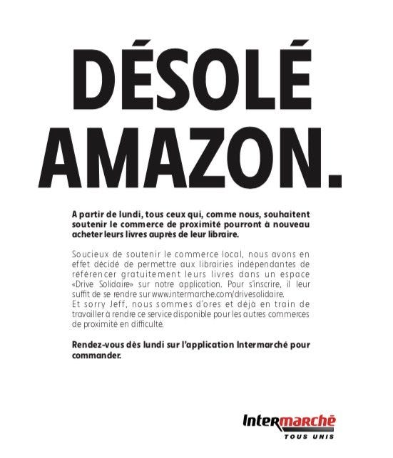 Les initiatives se multiplient de la part des grands distributeurs français pour ne pas laisser s’installer cette petite musique : Auchan annonce mettre à disposition ses plateformes physiques aux commerçants touchés par la fermeture de leur magasin, Monoprix va accueillir des fleuristes et des cordonniers dans ses rayons, et Intermarché assume une communication très anti-Amazon.