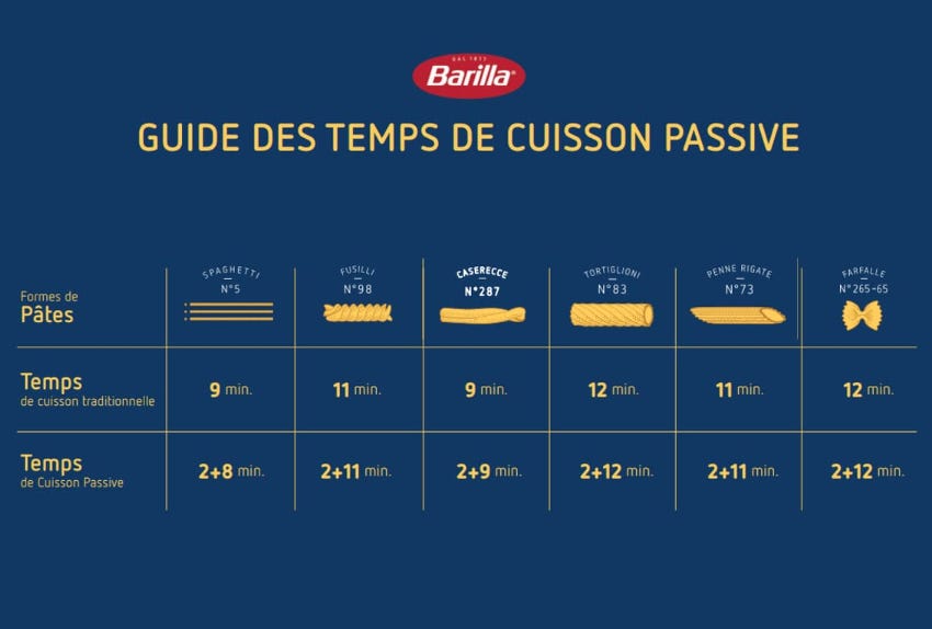 Sur son site, Barilla propose depuis la fin septembre une nouvelle méthode visant à obtenir un résultat parfaitement identique à celui d'une cuisson normale, mais en allumant ses plaques moins longtemps: la cuisson passive.