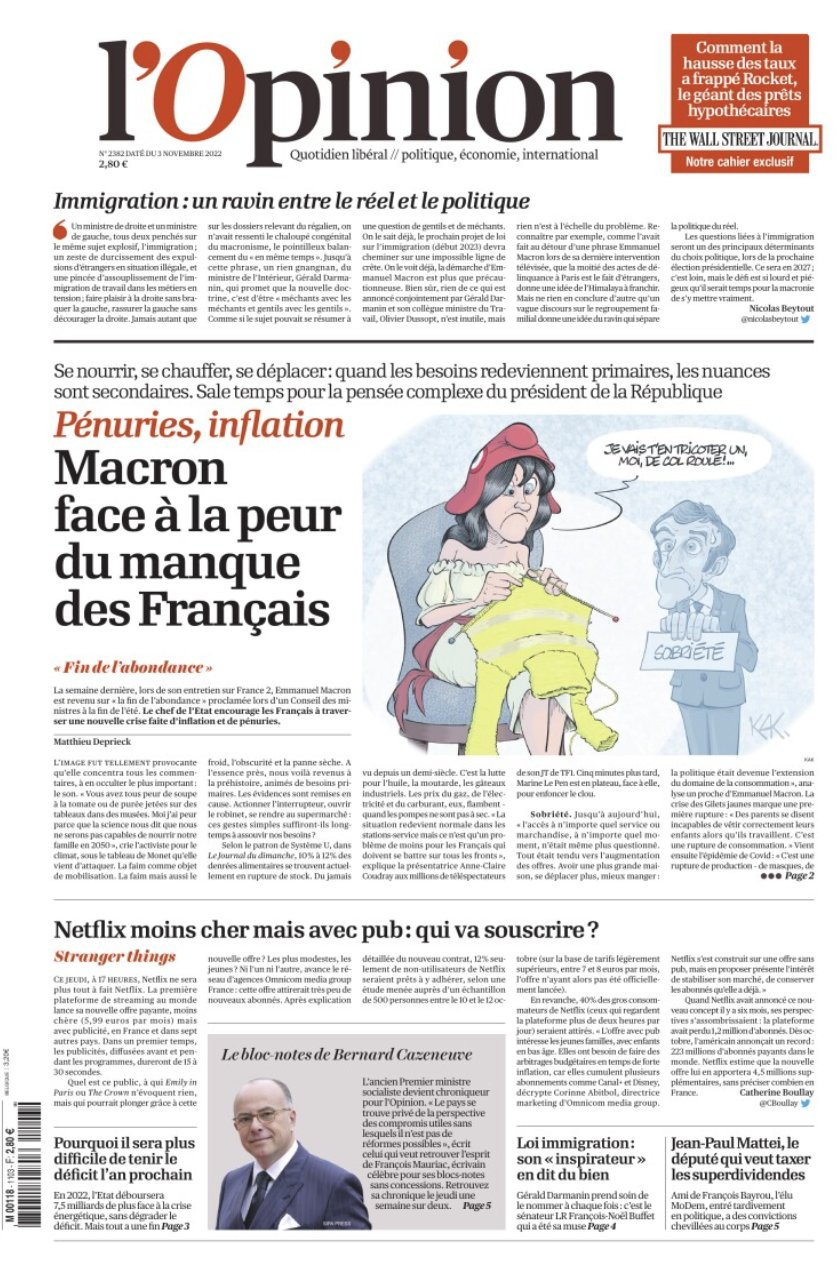 Si les Français se recentrent sur des besoins primaires, s’ils craignent de manquer, s’ils sont révoltés qu’un grand pays comme le leur ne soit plus en mesure de leur garantir la lumière, quelle conséquence politique cela peut-il avoir ? Les critères d’évaluation d’un bon leader politique sont revus à la baisse. Un chef de l’Etat doit-il porter un ensemble de valeurs démocratiques, se battre contre le dérèglement climatique, étendre l’influence de son pays dans le monde ? Ou simplement nourrir son peuple ?