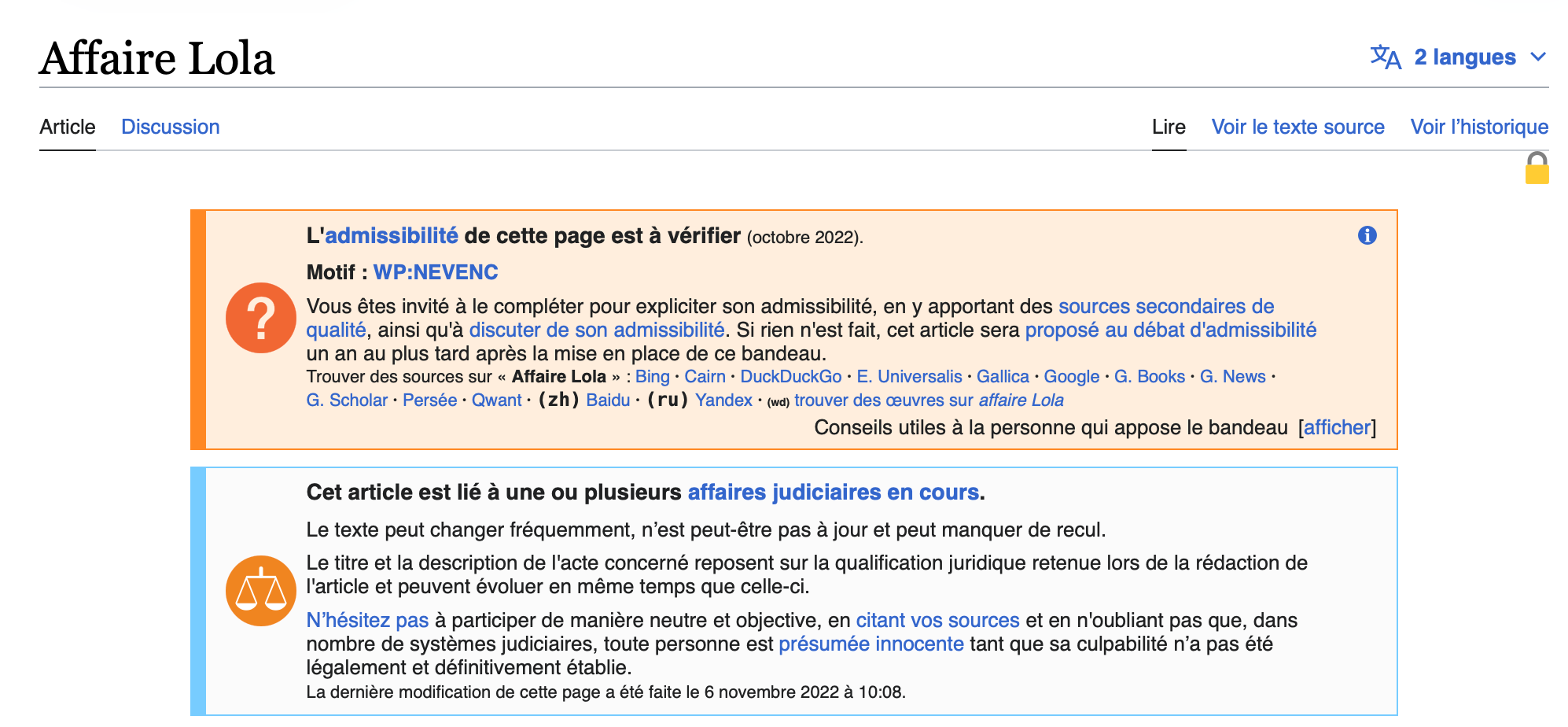 “Deux exemples parlants : une longue page «Affaire Lola» a été échafaudée dans les quarante-huit heures suivant le meurtre de la jeune parisienne de 12 ans. Et lors des dernières législatives, un utilisateur s’est empressé d’amender la page de la députée insoumise à peine élue Rachel Keke, ex-femme de chambre, pour préciser : «Le soir de son élection, elle a des difficultés à s’exprimer en direct à la télévision.» Si l’ajout malintentionné a été supprimé rapidement, il illustre désormais le tempo à lequel sont soumis les gardiens du Wiki-temple”