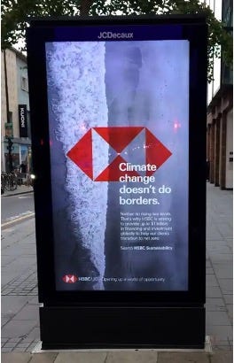 Au Royaume-Uni, l’Advertising Standards Authority (ASA) a récemment retoqué une campagne de la banque HSBC, qui avait suscité de nombreuses plaintes lors de sa sortie initiale en octobre 2021 à Glasgow, au moment de la COP 26. En cause, le fait que « malgré les initiatives mises en avant dans les publicités (un milliard de dollars investis par la banque dans des initiatives au service du climat), HSBC continuait à financer des entreprises et des industries qui émettaient des niveaux importants de dioxyde de carbone et d'autres gaz à effet de serre ». L’ASA a jugé cela d’autant plus inconvenant qu’à son sens « les consommateurs ne pouvaient pas savoir que c’était le cas, et que ces publicités omettaient des informations importantes et étaient donc trompeuses ».